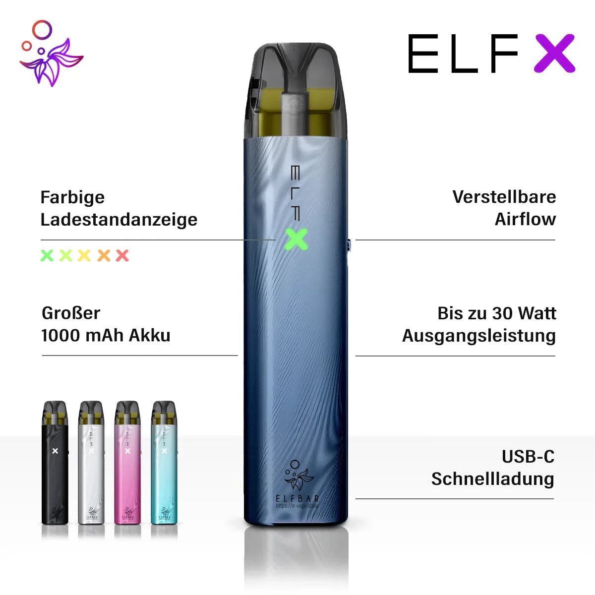 Erlebe mit dem Elfbar ELFX eine völlig neue Art des Dampfen. Das moderne Pod-System ist mit innovativen Features ausgestattet, die dein Dampferlebnis auf ein neues Level heben.