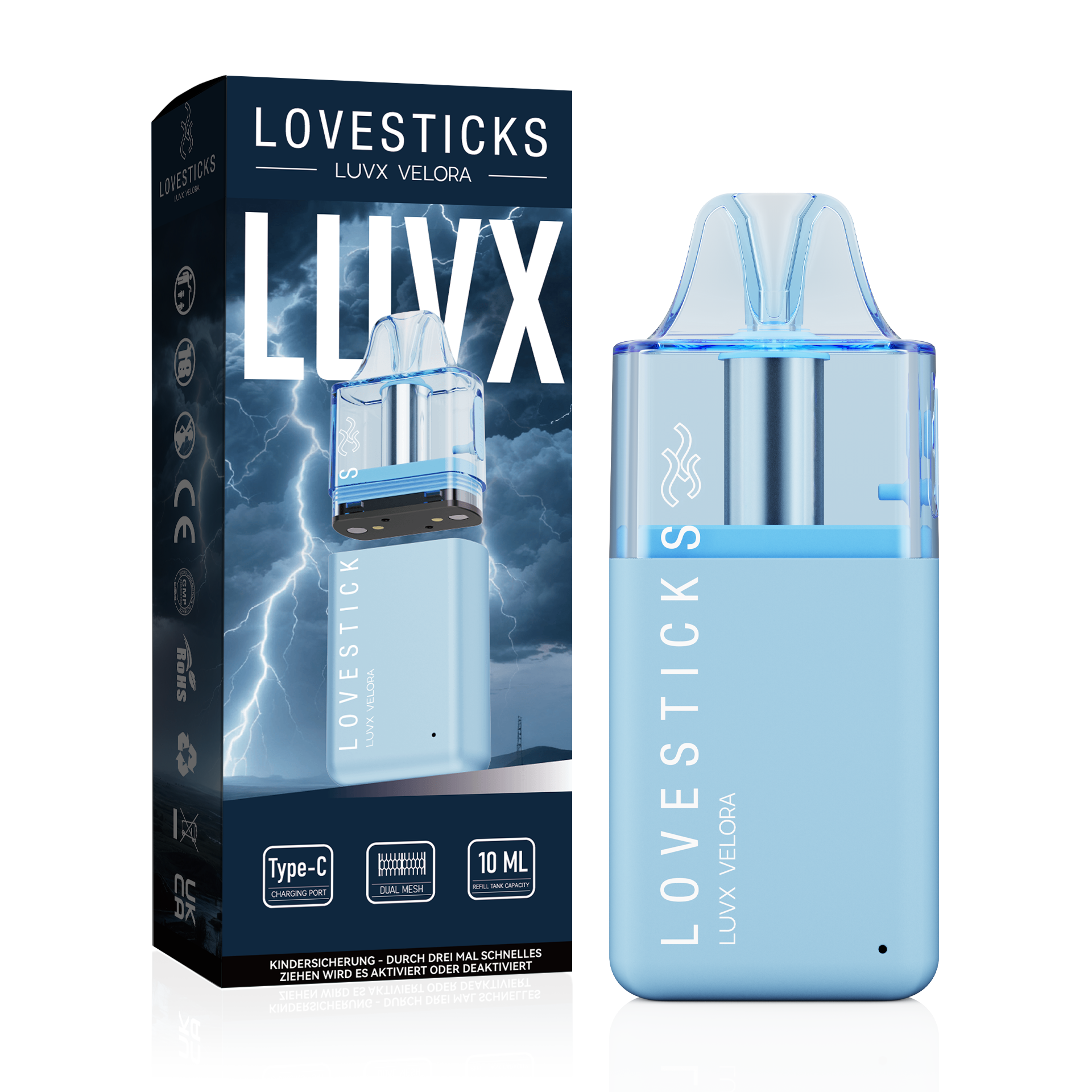 Mit der LUVX Velora erfüllt Lovesticks den Wunsch vieler Dampfer nach einer nachfüllbaren E-Zigarette mit großem Tankvolumen, starkem Akku und intensivem Geschmack.